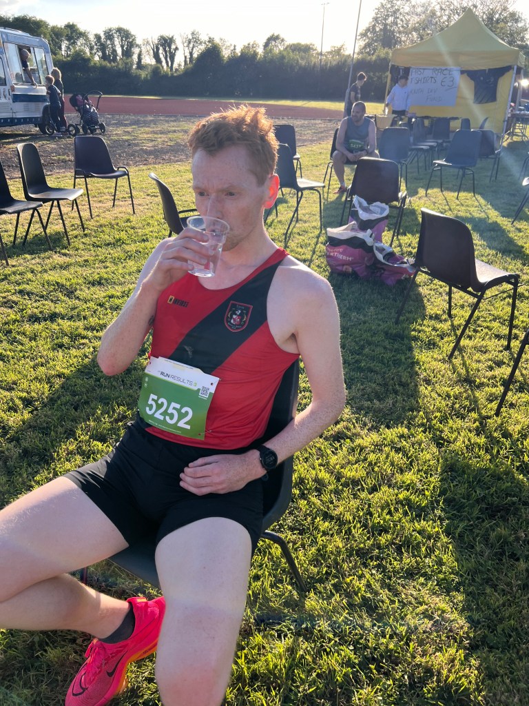 Anybody can run a kilometre, right? I passed by the 4th kilometre marker on the road and the watch read 12:50. The maths now was simple – close in a 3:09 or better and I’ll be under 16. The wind was still in our faces so the group didn’t start to speed up immediately but, as we took the last right hand turn, which was almost a hairpin that sent us back on ourselves, I turned on the boosters. I knew the corner was tight from the drive down so I took it deliberately wide so as to not slow down. I kept motoring on down the road where I spotted Darren Murphy who shouted very salient advice my way – “600 metres to go and LOOK OUT FOR THE HARD LEFT!”, shouted Darren. I had forgotten about the left hand turn but he was right and it was sharp. I was tucked in on the left hand side of the road so I moved out to the centre of the road to try mitigate some of the turn. I had also forgotten the turn was up a curb and onto grass – it was pretty treacherous now I think back on it. I hadn’t checked my watch since the last split, relying totally on effort, so I got a bit of a shock when I seen the gantry reading 15:48 as I entered the kick for home. I knew sub 16 was in my grasp so I started pumping the arms, Feidhlim Kelly style, and ran as fast as I could staring at the time. As I crossed, it was 15:59 but the watch read 15:58 and, mercifully, the net time was 15:58 also. I was stoked. 12th place. PB. Job done.