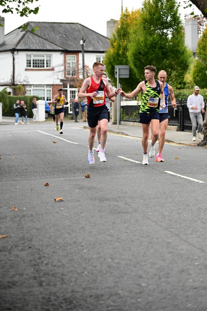 I got into Milltown and over the hill at Alexandra College into the village and then down the other side, taking the right towards Clonskeagh. This is my least favourite part of the course as it is 33 kilometres in, there is a slight but long incline and there are very few supporters on the course. There were also no runners in my immediate vicinity so I felt like I was running alone. The closest person to me was a man, who I learned was named Jonathan, about 30 metres away. He had the form of a man who was moving well and I had been this far away from him for about 10 minutes, both of us moving up through the field. I decided I was going to get onto the back of him and slowly caught up. I burned a couple of matches doing this and felt like I was hanging on for dear life when I was eventually with him. I was in a slight bit of bother now as this was the first time I was counting how much race I had left to run – 8 kilometres. I stayed in touch with him as we kept moving through the field. At one point, Jonathan moved to the side and let me go in front but I had barely anything to give at this point and felt like I was slowing. He quickly moved out from the back of me and put a gap between us.