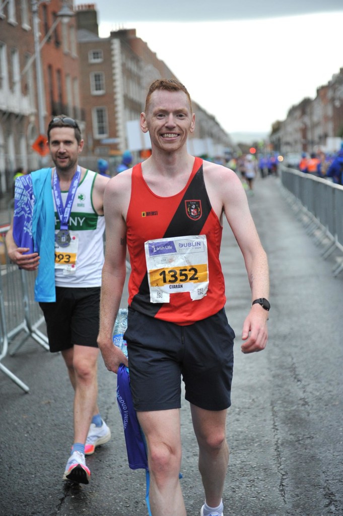 On the morning of the race, I woke up at 5:30am. I bounced out of bed having had a good nights sleep and ate my breakfast – a big bowl of porridge and a big cup of coffee. Everything was washed down with copious amounts of water and I was set. Following numerous trips to the bathroom before leaving the house, Emma and I drove to the city where we parked up beside the start line and went our separate ways. From here and until I walked to the start line was nondescript. There was a good buzz around the place and I saw plenty of familiar faces, all wishing each other well. The plan for the morning was to meet up with the crew that I had decided to run with – Anto Brady and Ryan Murphy. I’ve known Anto for a couple of years and we are in and around the same level on most distances. We spoke a week before the race and, realising we had very similar race plans, decided to team up for the race. Similar to Anto, Ryan and I would be around similar paces and would see each other around the Phoenix Park on a regular basis. We had made a plan a few weeks ago to run together as we had similar goals and how to achieve them. Unfortunately for Ryan, he developed a hamstring issue the week of the race and was unsure if he would make the start line. A tester run a couple days beforehand gave him enough confidence to run as far as he could at DCM, thinking it would be about 30K, and then drop out, with Valencia Marathon in December his A goal.
