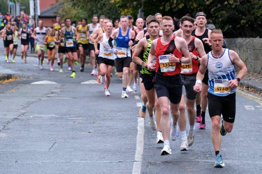 I had now entered the business end of the race. There was still a kilometre of downhill running into Milltown before the hills started again. I tried to do some quick calculations to see if I was on for sub 2:40 but I didn’t have the mental acuity. A rough calculation said I needed to be able to run 12K in 47:30 and I posited that this was achievable. I began targeting the runners up ahead of me to see if I could move up the field. The fatigue hadn’t started yet, but I knew it was coming, and did not want to get into the routine of checking the watch every 30 seconds to see had the pace fluctuated.